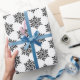 Ce papier d'emballage de Noël est présenté avec un imprimé de flocons de neige festifs en noir et blanc. Customiser cet objet ou acheter tel quel. Image stock