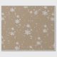 Un papier d'emballage couleur kraft brillant avec de grandes et petites flocons de neige brillants en argent.