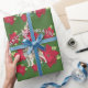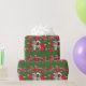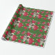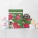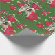 Papier d'emballage de vacances avec fleurs rouges et husky.