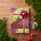 Peinture avec couple d'oiseaux, nid et arbre fleuri sur un beau arrière - plan couché de soleil sur un papier d'emballage