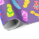 Ce beau papier d'emballage personnalisé présente un motif mignon et tendance de tongs colorés sandales sur un arrière - plan de couleur violette. Parfait pour envelopper un cadeau pour une femme ou une fille qui aime les sandales !