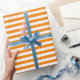 Cadeau Papier d'enveloppement à bandes orange et blanches