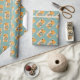 Ce papier d'emballage est parfait pour les photographes et les vieux persiennes de l'école avec son tout motif d'un appareil photo de style rétro en or, brun et crème contre un arrière - plan bleu aqua clair. .