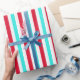 Ce joli papier rayé rouge blanc et turquoise est parfait pour les vacances, les anniversaires et les projets d'artisanat.
