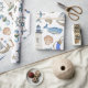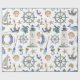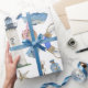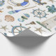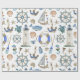 Papier d'emballage cadeau avec un arrière - plan blanc avec des articles de décoration côtiers aquarellés peints.