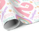 Le numéro 2 est l'élément de conception de premier plan de ce papier d'emballage de 2e anniversaire. Un arc-en-ciel et des étoiles complètent la couleur violet, rose, pêche et bleu pour un look festif mais doux.