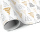 Vous adorerez ajouter une touche élégante aux cadeaux avec ce papier d'emballage contemporain avec des arbres de Noël argentés et dorés.