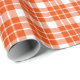 Un papier d'emballage conçu avec un motif plaid orange vif et blanc. Customisez le arrière - plan blanc entre autres options.