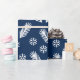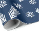 Flammes de neige de Noël et branches de sapin bleu marine motif papier à envelopper