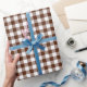 Un papier d'emballage conçu avec un motif à chèque brun et blanc. Customisez le arrière - plan blanc entre autres options.