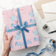 Le papier-cadeau de cette princesse pour enfants est prêt à être édité avec le nom de votre enfant. Imprimé avec de mignons châteaux et des mots de princesse bleus sur un arrière - plan à pois rose. Du papier doux pour les petites filles de tous âges. Créé en partie avec des graphiques de Kristi W, acheté à www.digiwebstudio.com et Angela Wenke à resaleclipart.com.