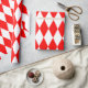 Un papier d'emballage conçu avec un motif arlequin rouge et blanc en très grande taille. Customisez facilement la couleur blanche.