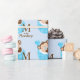 Adorable singe brun et bleu bébé "M is for Monkey" baby shower de singe enveloppé cadeau. Ce baby shower cadeau de singe brun et bleu peut être customisé avec votre texte dans le style de police et la couleur de votre choix.
