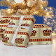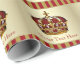 Beau papier d'emballage cadeau baby shower de couronne rouge et or.
