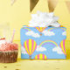 Un papier d'emballage conçu avec une montgolfière et un motif arc-en-ciel sur le bleu. Customisez l'arrière - plan bleu parmi d'autres options.