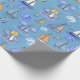 Papier d’emballage bleu pour voilier; parfait pour envelopper cadeau les anniversaires d’enfants et les cadeaux de baby shower.