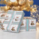 Un cerf est vêtu pour les vacances, portant un casquette Père Noël rouge et des étoiles sur ses bois. Entouré de bonbons de menthe rouge et blanche, ce papier d'emballage festif serait parfait pour envelopper ce cadeau de Noël spécial.