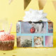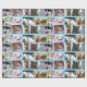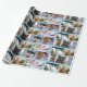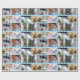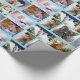 Joli enveloppement cadeau de Noël avec des photos de différents chats adorables dans des chapeaux de Père Noël, dans la neige, et dans des cadeaux.