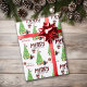 Le motif répété sur ce papier d'emballage de Noël mignon est l'image d'un chat noir curieux assis parmi des paquets-cadeaux joliment emballés à côté d'un sapin décoré. Un oiseau bullfinch atterrit sur l'arbre derrière, et le chat le regarde. Stylisé rouge et noir buffle texte plaid dit MERRY CHRISTMAS", et votre propre signature est dans deux champs pour vous de customiser.