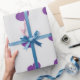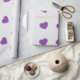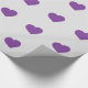 Ce papier d'emballage présente un motif extensible de coeurs violets sur un arrière - plan blanc.