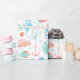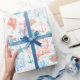 Papier enveloppant avec aquarelle illustrations de la vie marine dans des couleurs coralliennes. Consultez notre magasin pour obtenir plus de papier d'emballage adapté aux anniversaires et aux baby showers pour enfants.