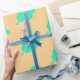 Ce papier d'emballage expose un ensemble de feuilles marins turquoise qui reposent sur un sable méditerranéen orange de plage.