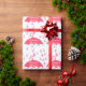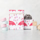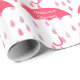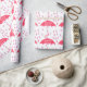Baby shower élégant ou papier d'emballage de douche nuptiale fait en blanc, avec un grand motif rose goutte-à-goutte et de grands parasols roses. Personnalisez le texte blanc pour votre événement douche.