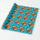 Papier enveloppant représenté avec un imprimé de football sportif sur un arrière - plan turquoise. Customisez cet objet ou achetez tel quel.