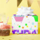 Papier d'emballage d'anniversaire mignon, coloré et amusant avec un motif de cupcakes, pois, et le mot anniversaire écrit dans une police de points de polka. Ce papier d'emballage d'anniversaire amusant s'il est parfait pour un jour spécial pour n'importe qui.