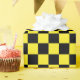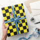 Un papier d'emballage conçu avec un motif à damiers noir et jaune de grande taille. Vous pouvez changer le jaune pour une couleur différente.