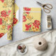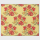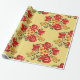 Papier d'emballage russe Hohloma, art russe, fraises rouges, feuilles jaunes, arrière - plan noir