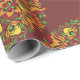 Papier d'emballage russe Hohloma, art russe, fraises rouges, feuilles jaunes, arrière - plan noir