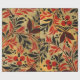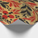 Papier d'emballage russe Hohloma, art russe, fraises rouges, feuilles jaunes, arrière - plan noir