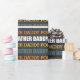 Une fabuleuse fête des pères de typographie moderne papier cadeau d'emballage dans les tons orange, blanc bleu et jaune sur un arrière - plan noir. Assurez-vous que chaque cadeau que vous donnez a une couche d'amour avec le papier d'emballage personnalisé de la Bluebird. Disponible en quatre types de papier premium et cinq tailles différentes, notre papier d'emballage a tous vos besoins d'emballage cadeau couvert - parce que la présentation importe autant que le présent! ! © Julie McIver