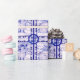 Ce design de lapin bleu et blanc était à l'origine peint à la main sur des carreaux de céramique, pour que vous puissiez voir les espaces de carreaux. Il fonctionne magnifiquement comme une conception papier d'emballage. Le design monochrome présente un lapin dans un cadre enneigé, bordé par plus de lapins et de flocons de neige.