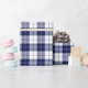 Un papier d'emballage conçu avec un motif plaid bleu marine et blanc. Customisez le arrière - plan blanc entre autres options.