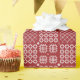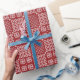 Ce design d'enveloppement cadeau est influencé par les motifs traditionnels de tapisserie galloise, connus au Pays de Galles comme une "carthen", qui est un jeté ou une couverture utilisé sur les lits et les chaises. C'est mon propre design original. La couleur arrière - plan est un rouge profond.