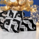 Des moustaches en damier sur un arrière - plan noir décorent cette écharpe branchée.
