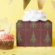 Ce design élégant est orné d'un sapin de Noël courbé de bijoux ornés de bijoux et de cadeaux en dessous, le tout entouré d'une délicate bordure de filigrane d'or avec des bijoux aux coins.