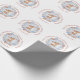 Papier à enveloppement de Noël avec un cerf mignon en pain d'épices couronne de Noël bleu et beige. Personnalisez facilement le texte. - Kate Eden Art