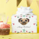 Ce papier cadeau de Noël Carlin présente mon dessin d'aquarelle avec des ornements digitaux, un faux orteil et du texte ajouté.
