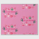 Papier à envelopper avec crânes et "C'est la saison en rose avec chocolat chaud ou tasses de café