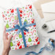 Enveloppe cadeau de vacances de golf créative avec un golfeur de Père Noël entouré de bonbons de Noël, biscuits et balles de golf.