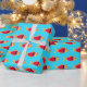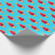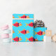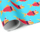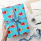 Papier d'emballage de Noël amusant avec un motif de poisson rouge illustré dans Père Noël tenues sur un arrière - plan bleu. Poisson d'or Père Noël Enveloppement de Noël Papier de vacances Design | ©Melissa Patton - Artiste/Illustrateur