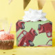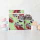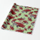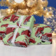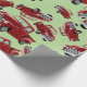 camions rouges sur papier d'emballage vert clair