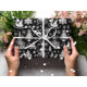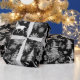 Ce papier d'emballage de Noël présente un joli motif noir et blanc en toile française.