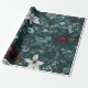 Papier d'enveloppement de Noël Poinsettia avec un Arrière - plan vert foncé
