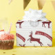 Papier d'emballage Masculine de Noël fait dans un arrière - plan rayé gris pâle et blanc, avec découpes de cerfs en plis de buffle rouge et noir, ornement de flocon de neige gris et blanc et bannière rouge et blanc lisant Joyeux Noël. Personnalisez le texte pour lire ce que vous voulez.