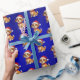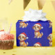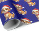 Notre papier d'enveloppement de Noël de chien à huile bleue montre un chien de dessin animé mignon et adorable portant un chapeau de Père Noël, adapté pour envelopper des cadeaux pour les enfants et les enfants.