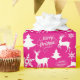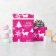 Hot Pink Fuchsia Papier de Noël Enveloppement cadeau de vacances avec rennes dansants, arbres de Noël, flocons de neige et joyeux voeux de Noël pour un motif de vacances d'hiver amusant. Ce papier d'emballage Xmas mignon est parfait pour tous les types de cadeaux et cadeaux pour les filles!